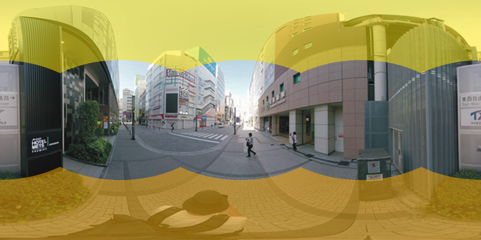 通常、360°動画を平面にしたエクイレクタングラー形式の画像はパッと見歪んでいるだけにしか見えず、どちらが正面なのかが人の目には認識し辛いです。